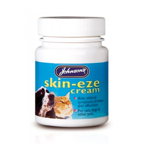 Johnson’s Dog & Cat Skin-eze 50g soothing sulphur cream, with other natural ingredients. Aids relief of minor skin affections in dogs, cats, small animals and cage birds. Gentle, readily absorbed and easy to apply.