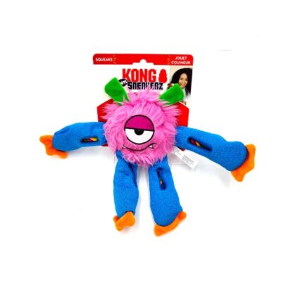 The KONG Sneakerz Knots has a sturdy internal rope which features a rope knot in the head that extends through the legs providing an outlet for appropriate chewing behavior. Unique, peek-a-boo windows pique curiosity and extend the engagement with foraging fun. Long, dangly legs are great for shaking play and a grippy tennis shoe material legs squeak for interactive tugging playtime galore with these grinning pals.