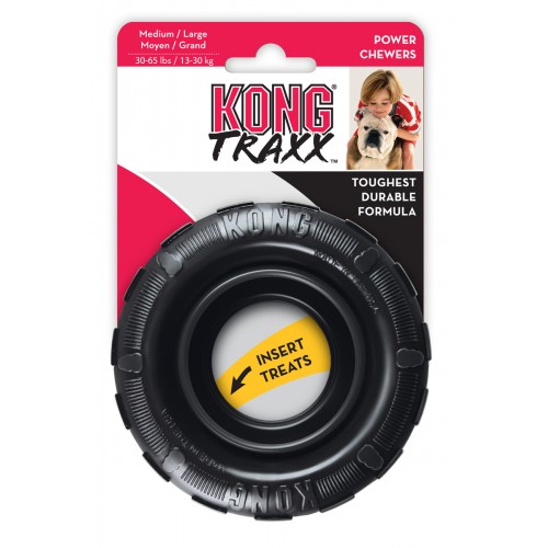 KONG Tires is a durable tire chew designed to provide the ultimate chewing experience. The uniquely shaped sidewalls and thick outer tread create a super durable, elastic barrier. The sidewalls are designed to double up and rebound when compressed to provide an active chewing experience, and the Tires are perfect for bouncy games of fetch.